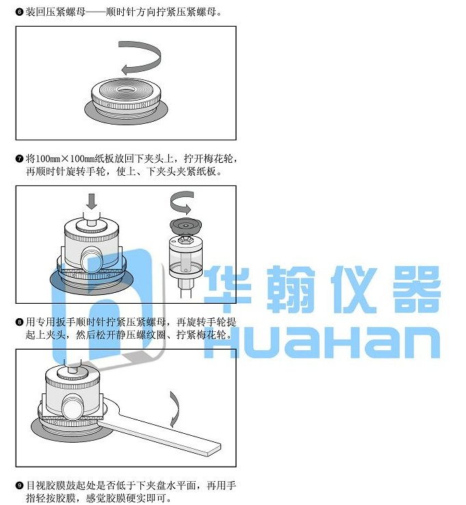 2,在測試時膠膜突然破裂,立即按下停止鍵,等屏幕右下角顯示提示下限位(此時活塞以回到起始位置)后,再按下列方法更換膠膜