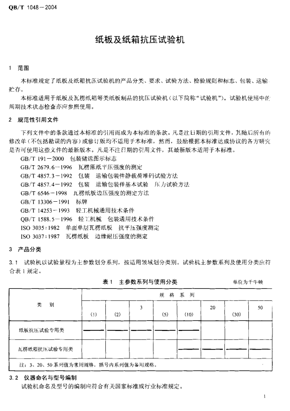 本標準是對QB/T1048-1998《紙板及紙箱抗壓試驗機》的修訂。
